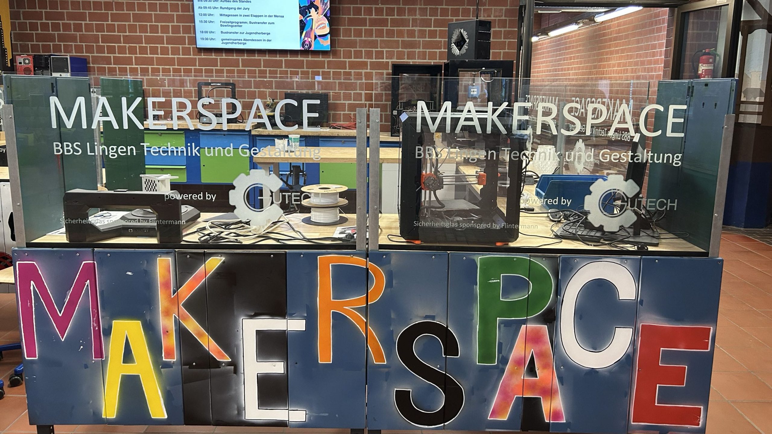 Der Maker Space ist ein kreativer Arbeitsraum mit fünf modernen 3D-Druckern. Hier können eigene Ideen geplant, gestaltet und direkt als reale Modelle umgesetzt werden. Er bietet Raum für Innovation, Experimentieren und gemeinsames Arbeiten.